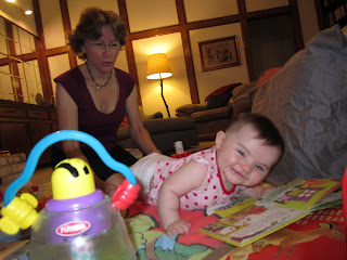 Playing at Grandma's one afternoon when mom and I had to leave our house for an open house the realtor was having. I am starting to try to inch forward like crawl.